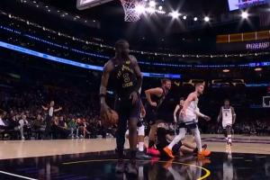 东契奇被拉拉维亚误伤到膝盖!