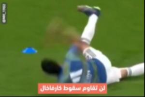 皇马赛前热身,卡瓦哈尔传球时不慎滑倒在地,随后起身踩了踩草皮,巴尔韦德在一旁偷笑。