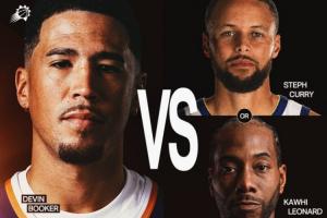 并且,因为太阳排名高,主场能多卖一场票,太阳官方也晒出了宣传海报,主人公是布克、库里、伦纳德。