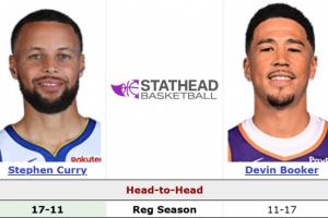 据统计,库里生涯面对布克17胜11负,场均26.4分5.5篮板5.6助攻1.1抢断,布克场均24.1分3.3篮板5.6助攻1.2抢断。