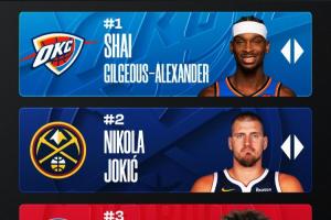 上期链接>>>官网MVP榜:SGA约基奇前2 坎宁安升第3 文班升第4 东契奇跌至第5