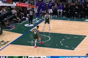 GIF-字母哥脚踢球给罗林斯